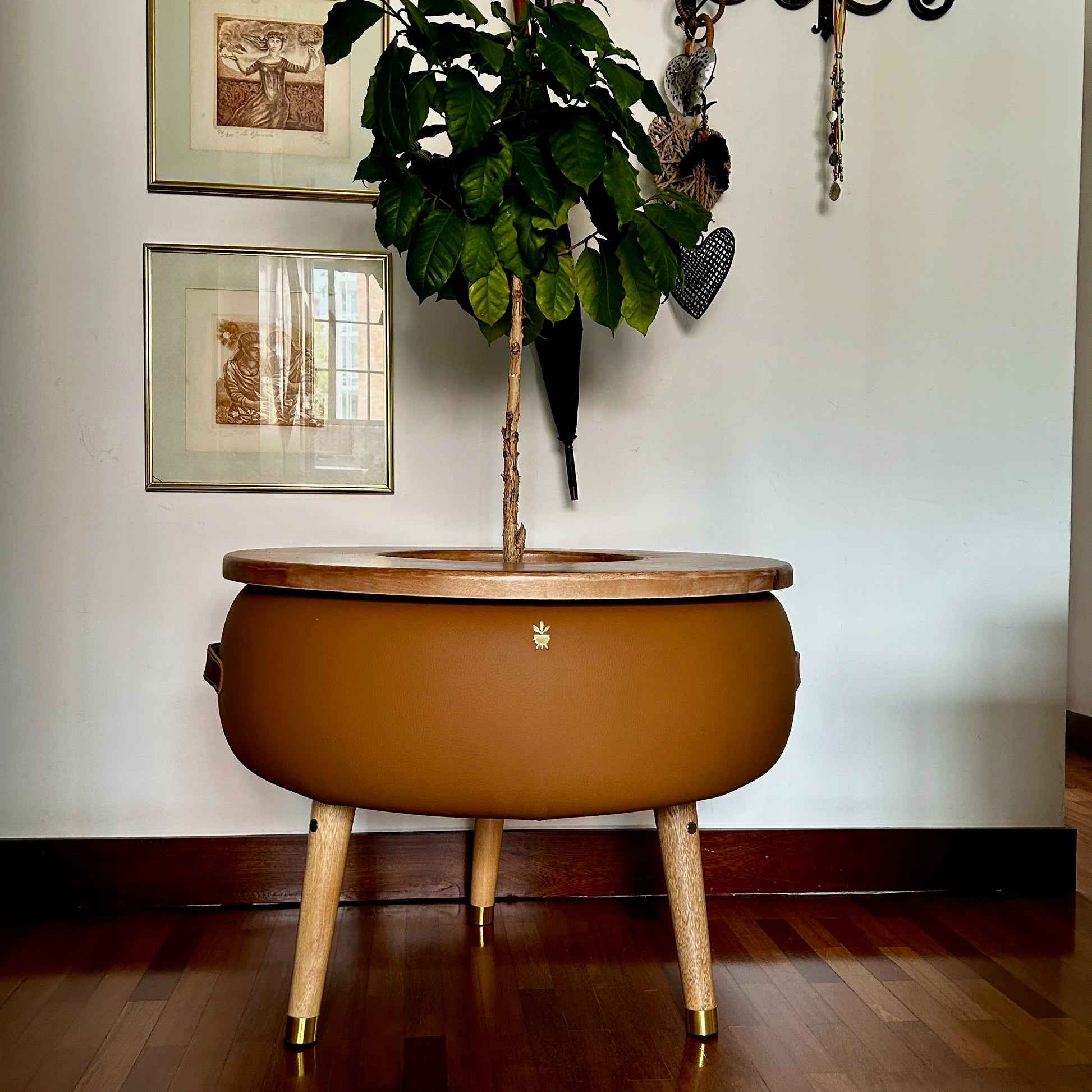 La Matera Merano Cammello Grande combina sostenibilidad y artesanía al estar fabricada a mano a partir de una llanta reciclada. Estilo para realzar cualquier espacio interior con un toque de sostenibilidad.
